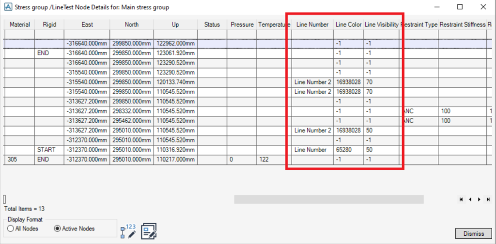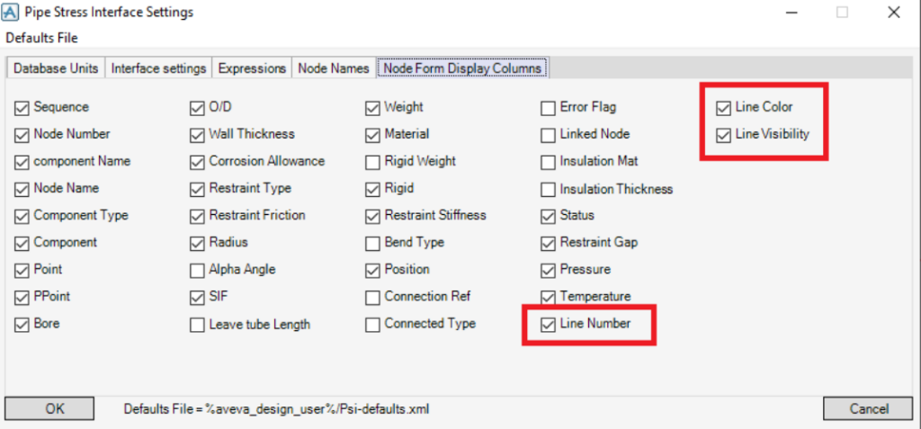 Similar to how component temperature is retrieved, you can define either an expression or a PML function to obtain line data from a component. Three new PSI UDAs—:PSILineNum, :PSILineColor, and :PSILineVisib—have been introduced to store and access this information. These additional line data columns can be displayed by enabling them in the Node Form’s Display Columns tab