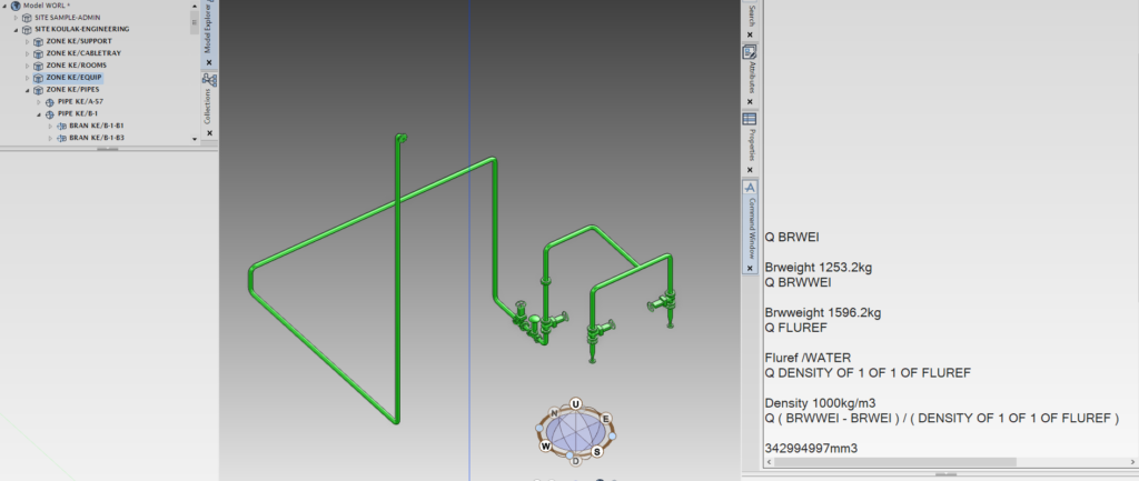 This pseudo‑attribute returns the wet weight of the pipe (or branch or individual component, depending on the current CE), meaning the weight including the fluid. The calculation relies on the following principles:
