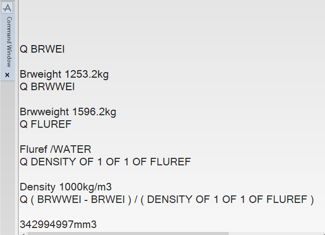 The expression BRWWEI – BRWEI gives the weight of the fluid alone (Wet Weight – Dry Weight).